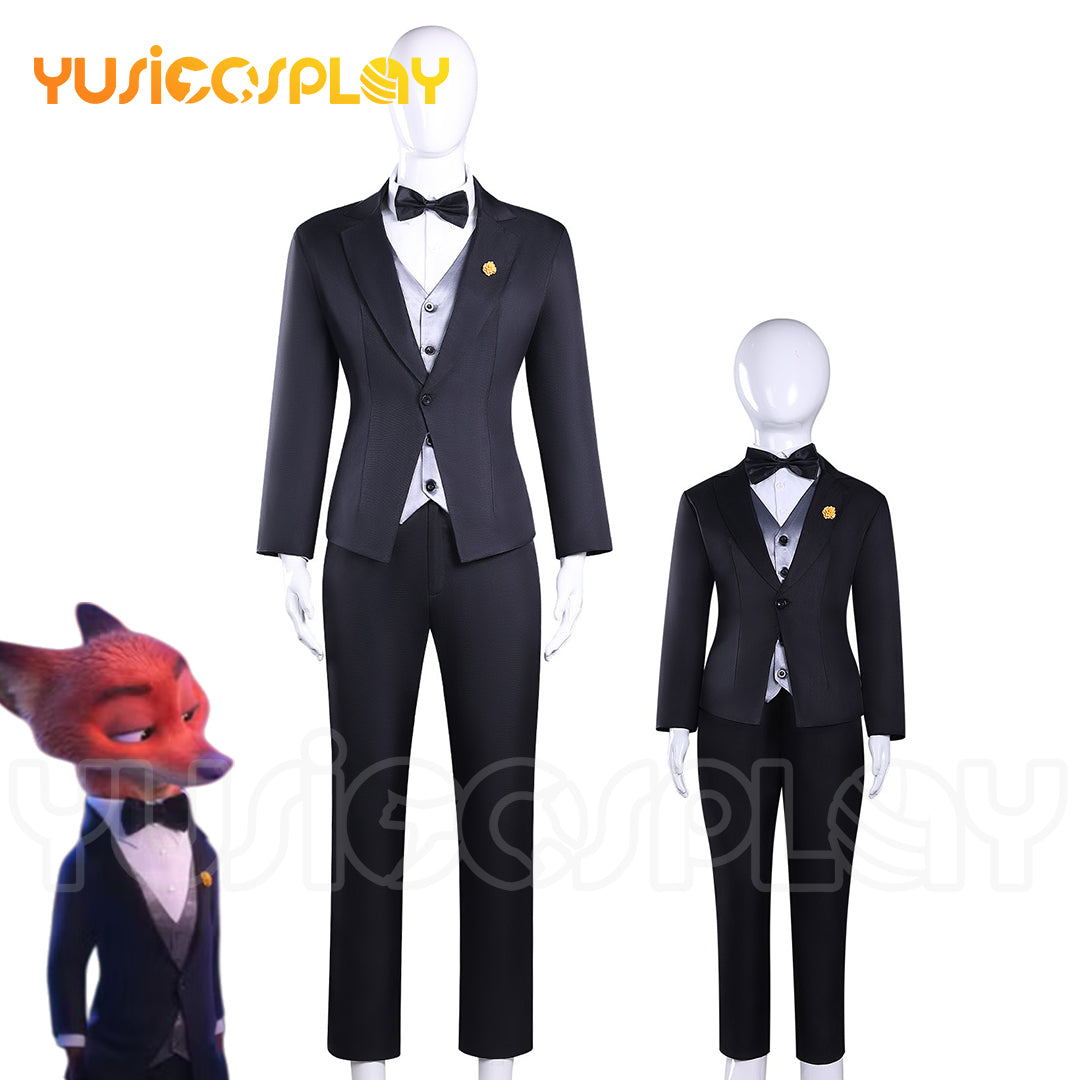 Kids & Adults Size Disney Zootopia 2 Nick Wilde Superstar Black Suit Cosplay Costume Size